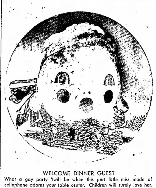 Picture of a “cellophane doll” readers of the Salt Lake Telegram could make for their holiday parties. Printed december 7, 1950.