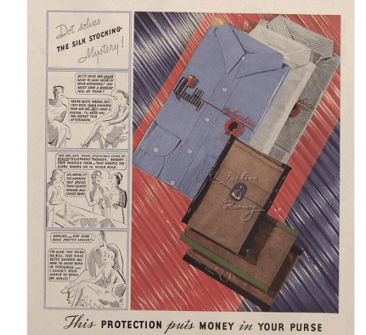 Ad explaining how use of cellophane reduces the cost of everyday products, 1935 (Series I, Box 43, Folder 14, ‘Advertising tearsheets – 1935’, E.I. du Pont de Nemours & Company Advertising Department records (Accession 1803), Manuscripts and Archives Department, Hagley Museum and Library, Wilmington, DE 19807).