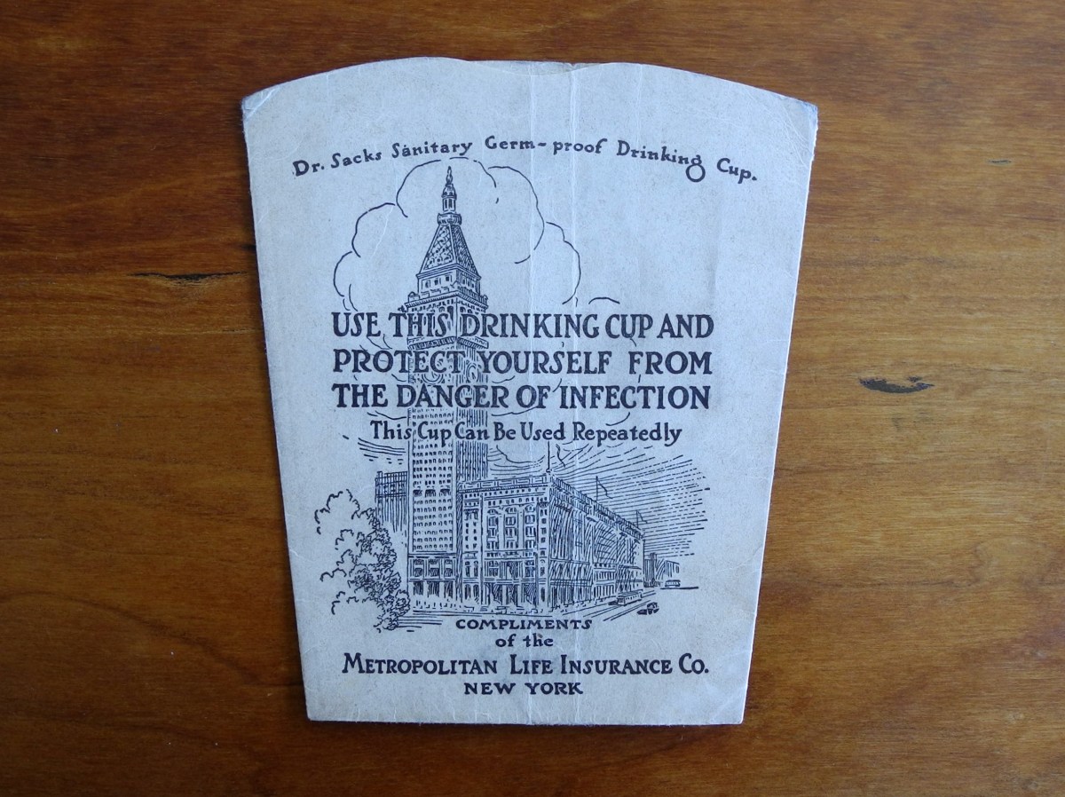 Dr. Sachs Sanitary Germ-Proof Drinking Cup, undated. (Competitive company product sample. Hugh Moore Dixie Cup Company Collection, Special Collections and College Archives, Skillman Library, Lafayette College.)