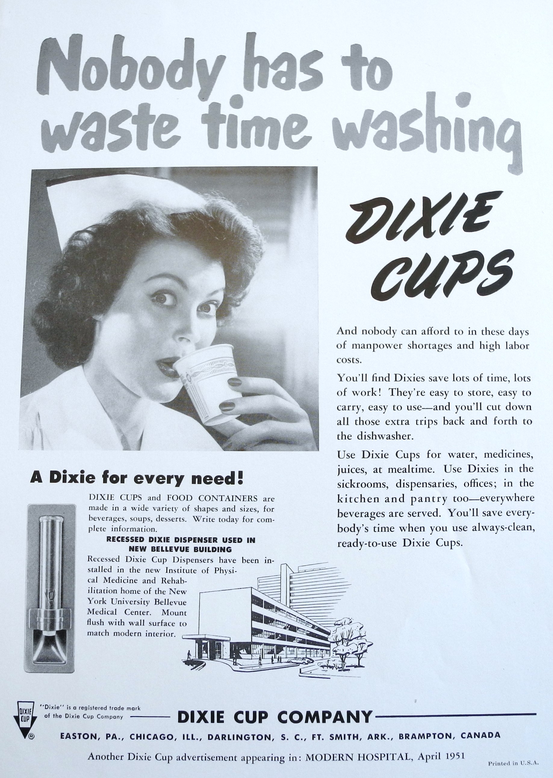 Dixie advertisement for Modern Hospital, 1951. (Hugh Moore Dixie Cup Company Collection, Special Collections and College Archives, Skillman Library, Lafayette College.)