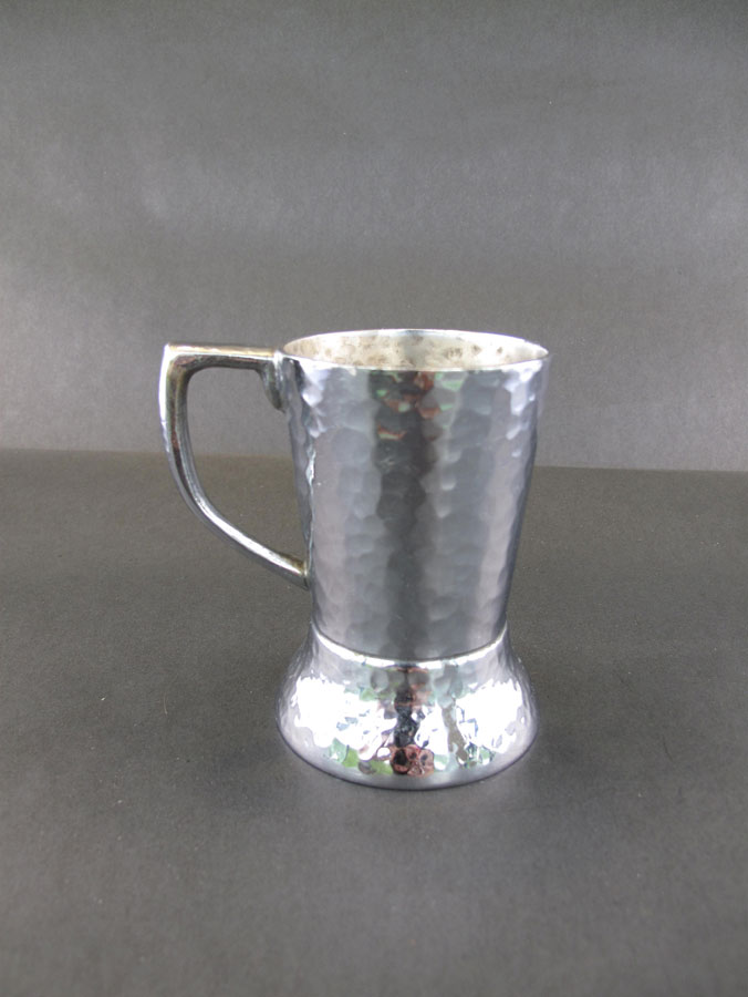 Hammered silver cup holder with handle, ca. 1933. (Hugh Moore Dixie Cup Company Collection, Special Collections and College Archives, Skillman Library, Lafayette College.)