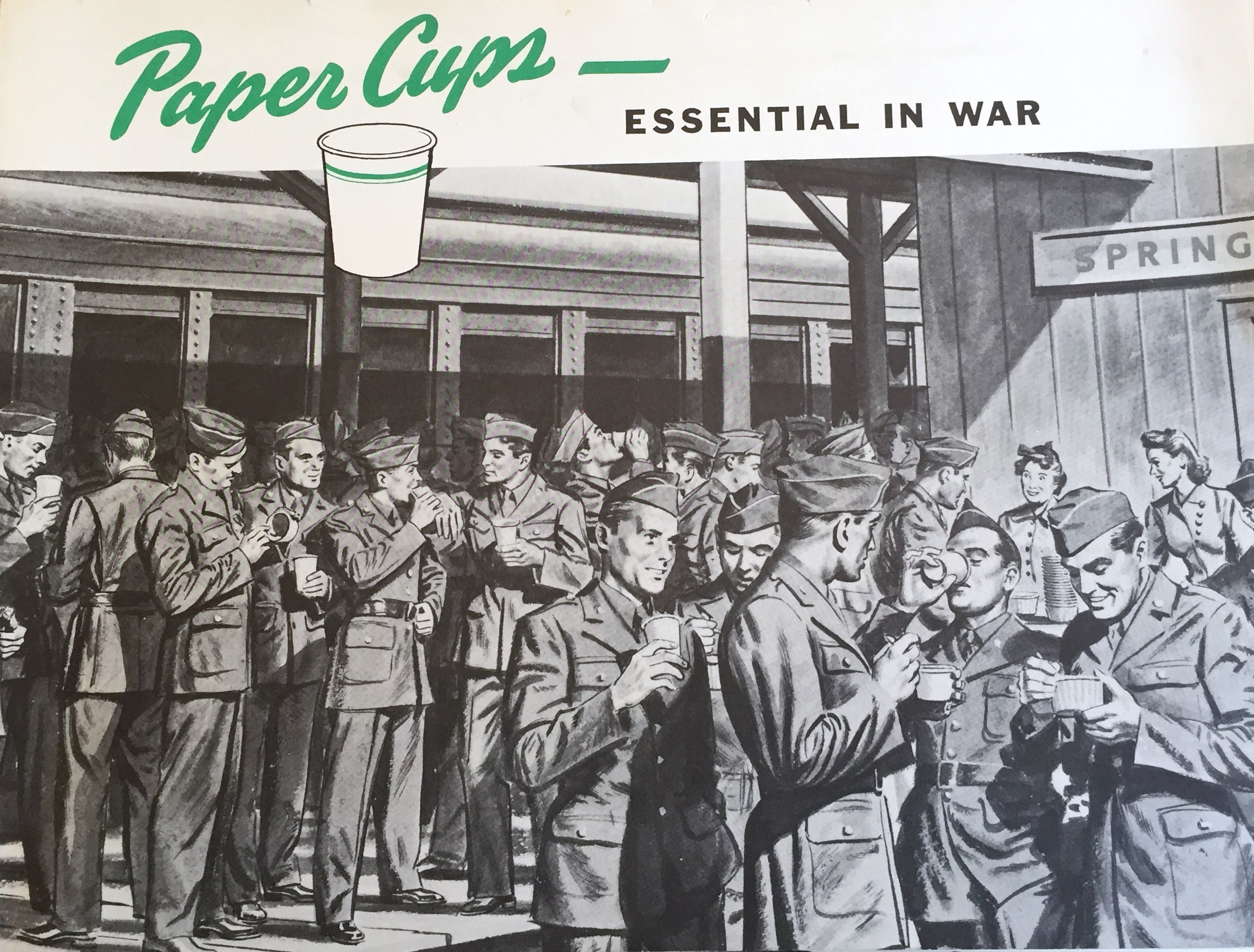 Cover from Paper Cups – Essential in War, 1942. (Hugh Moore Dixie Cup Company Collection, Special Collections and College Archives, Skillman Library, Lafayette College.)
