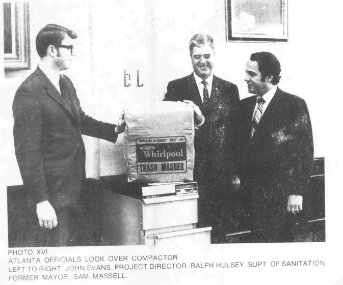 Both Whirlpool and the Environmental Protection Agency (EPA) took the cost-saving potential of the home trash compactor seriously. In 1971 the EPA commissioned a study in Atlanta where 400 households were given subsidized access to compactors (bought by the City on consignment from Whirlpool).