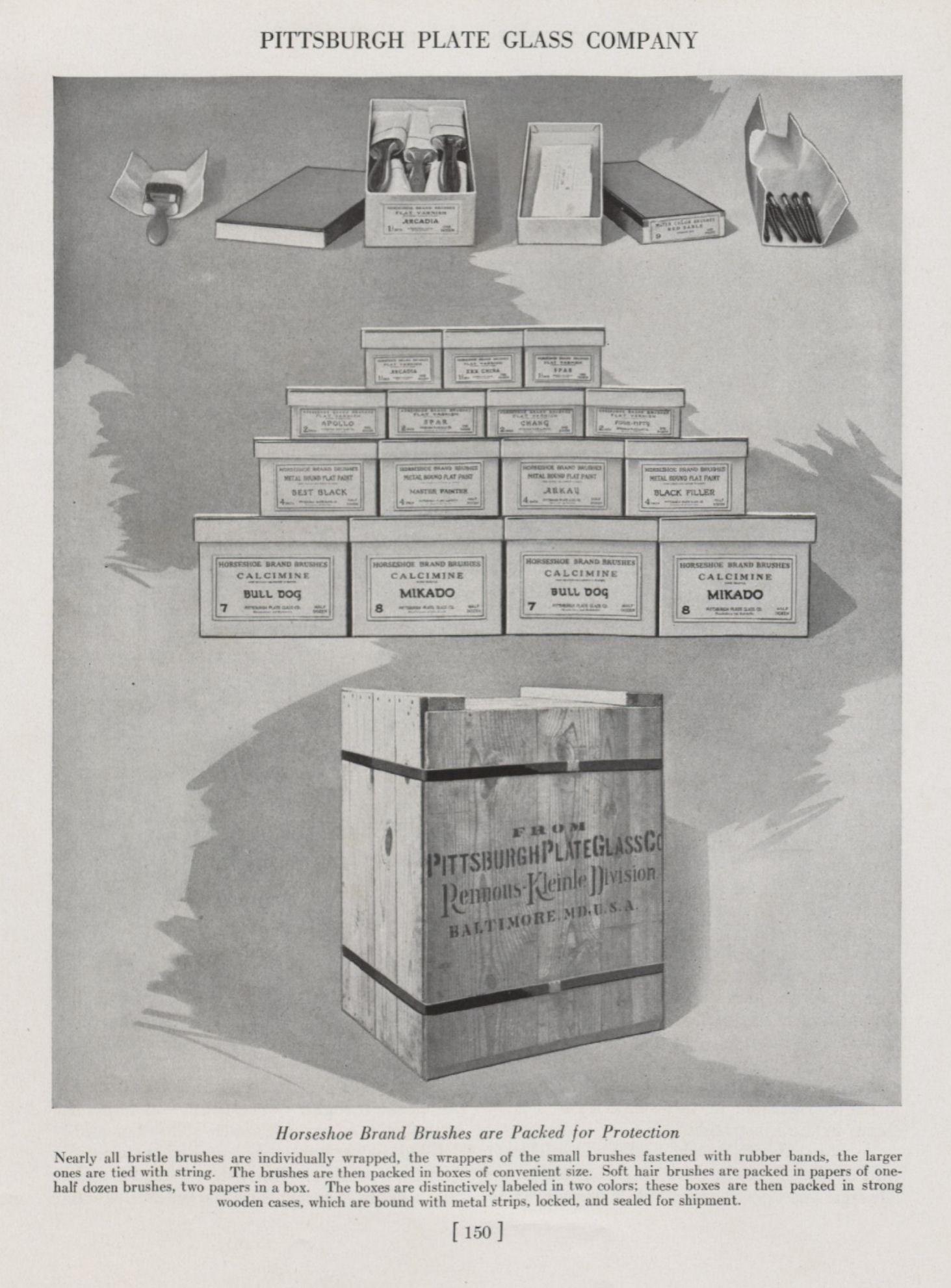 Illustration of brush packaging from “Paints, Varnishes and Brushes” catalog. Paper, Pittsburgh Plate Glass Company, 1923. Courtesy, The Winterthur Library, TP937 P69 TC.