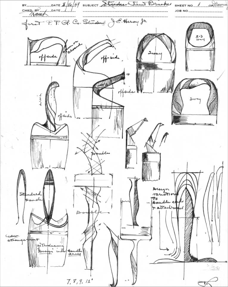 As these drawings show, designers of painting tools considered the needs of users. Technical illustration, Universal Design, 1949. Courtesy of the Hagley Museum and Library, digital collections, Lamb175.jpg.