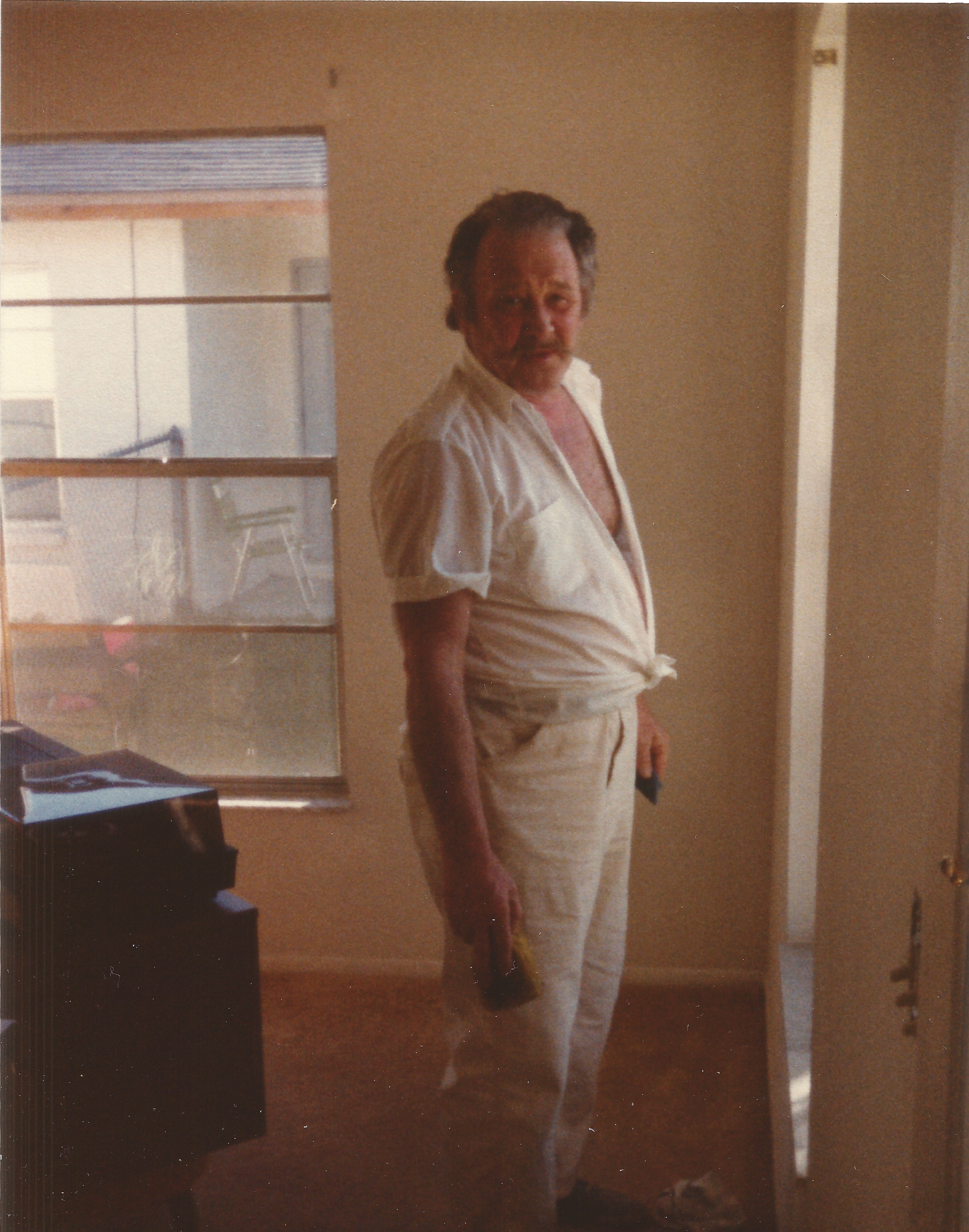 Richard Wilkens painting in a house in Melbourne, Florida. Even when off the clock, he continued to wear the white uniform of a professional. Photograph, ca. 1981. The Wilkens Family Collection.
