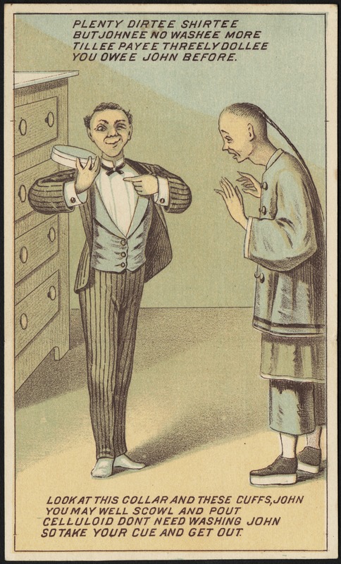 10_03_003682b Previous Next Published December 10, 2015 at 484 × 800 in VI. Off the Cuff // The Twilight of Paper Collars, Cuffs, and Bosoms Unfolded, the card shows Chinese laundries thwarted by the washability of celluloid. Explore the history of disposability through object stories. Click to share on X (Opens in new window) X Click to share on Facebook (Opens in new window) Facebook Like Loading...