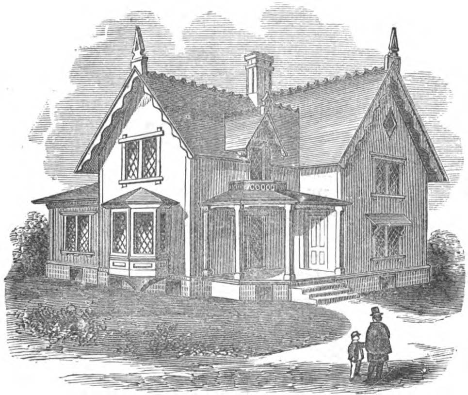A generation earlier, before the new celluloid plastic had begun to replace paper, the Narragansett Company had a similar crowd in mind for its Elmwood collars. Their packaging featured a bucolic middle-class house somewhere outside the bustle of the city. It looked much like one that the architect George Woodward had included in his book of cottage designs a few years earlier. Woodward’s house spoke to the same sensibilities as the Elmwood collar. Its floorplan was designed for economy of heating, and its general proportions and styling were calculated to be just elegant enough. “If tastefully furnished,” he wrote, the cottage would “convey a pleasing impression to all; much more so than dwellings of a more expensive class, where sufficient attention is not given to such accessories.”