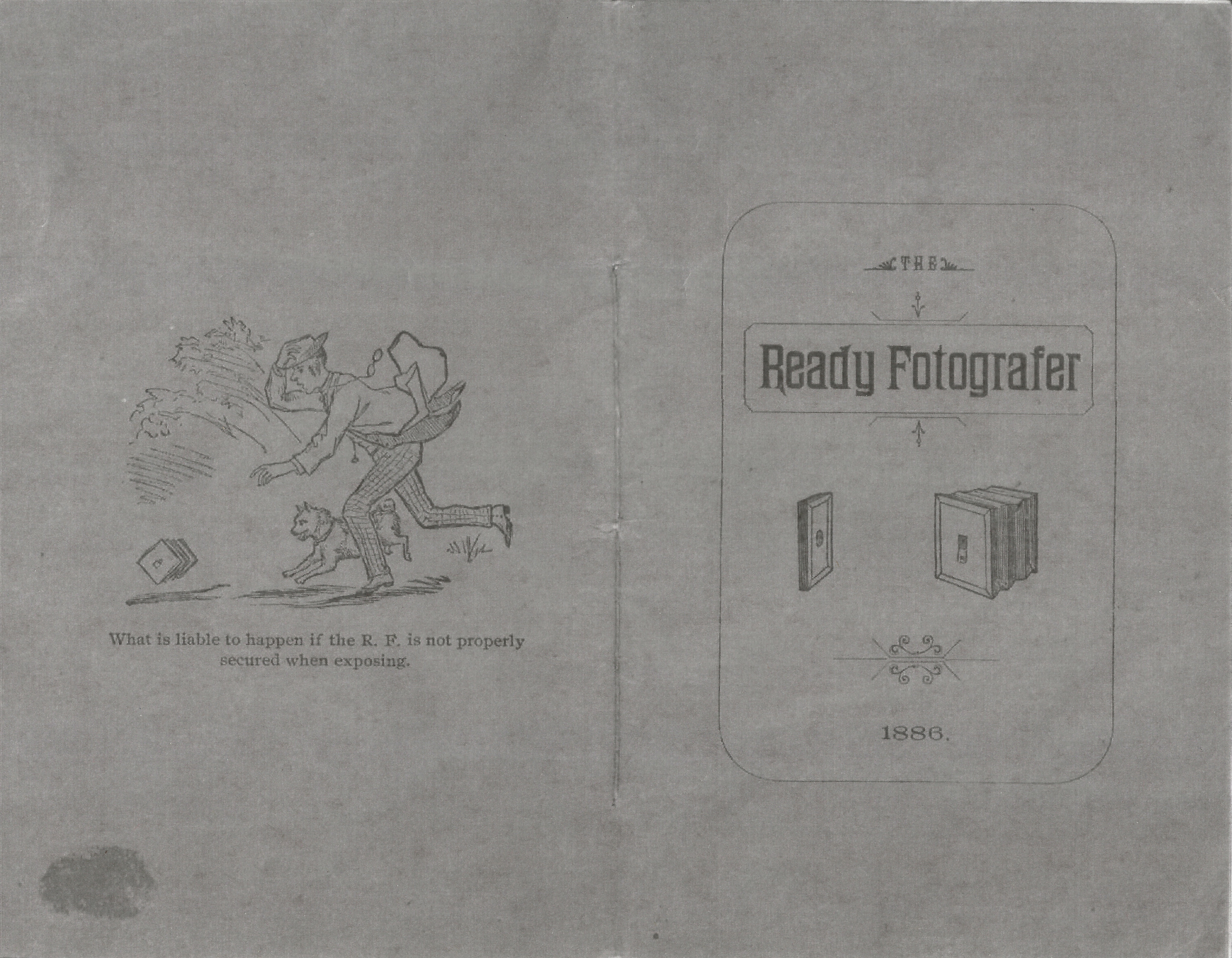 Front and back cover of the manual for the Ready Fotografer, Ready Fotografer Company, 1886. Because of the camera’s light weight, users were warned to secure it when they took photographs, lest it blow away.