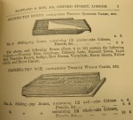 At the same time, the use of watercolors was expanding beyond the professional field of art instruction or fine detailed work. Boxes of watercolors, such as those advertised by J. Barnard & Son, enabled professional and amateur artists to take their work outside the studio. Boxes came in numerous styles, including a line aimed specifically at children. These were basic sets that often included other important tools such as paintbrushes. Box sets were easier for children to care for over multiple uses and to store when not in use. As seen in J. Barnard & Sons’ catalog (ca. 1880s), it was common for these sets to be accompanied by instructions for use, so not everyone had to be an expert. This image is one of several pages explaining how to mix paints to exact color shades.