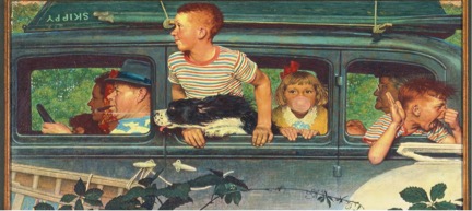 Detail from Norman Rockwell (1894-1978), Going and Coming, 1947. Oil on canvas, 16″ x 31 1/2″. Cover illustration for The Saturday Evening Post, August 30, 1947. Norman Rockwell Art Collection Trust, 1973.15.