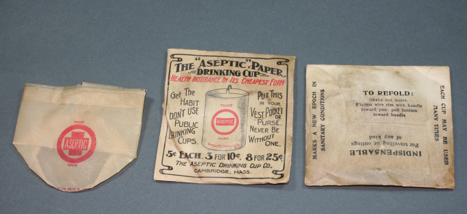 “Aseptic” Paper Drinking Cups, Aseptic Drinking Cup Co., Cambridge, MA, around 1910. Waxed paper and wire. Collection, Katherine C. Grier. Reflecting public concern about infectious disease, the text on the envelope promotes it as “health insurance in its cheapest form.”