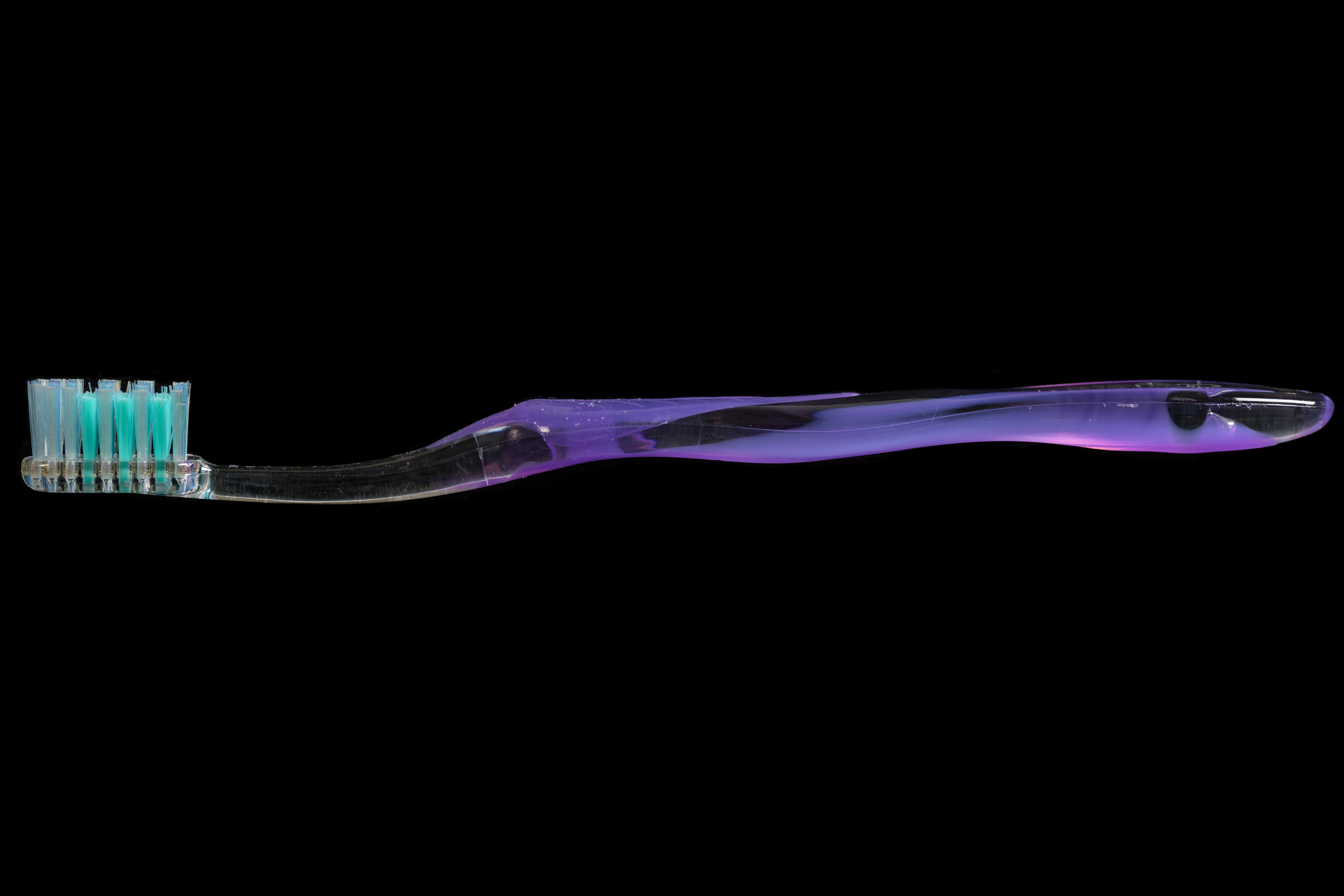 Toothbrush, maker unknown, mid-2010’s. Colpolyester plastic body with rubber grips and nylon bristles. Collection, Katherine C. Grier. – (Evan Krape / University of Delaware)