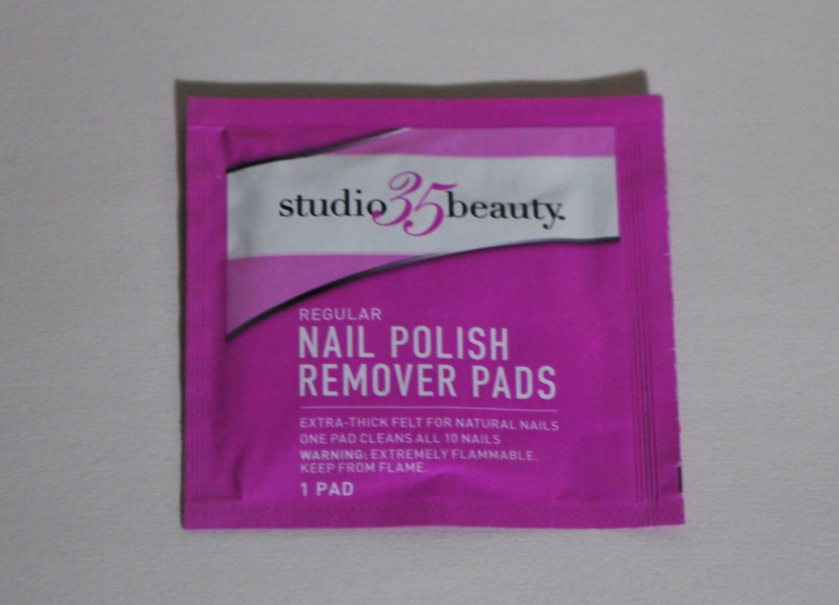 Nail polish remover pads in foil package, Studio35 Beauty, 2016. Foil package and cotton blend wipes. Collection, Kara Yenkevich.