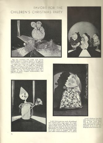 [2]“Favors for the Children’s Christmas Party,” Parties 4, no 4, 1930, 13, “Party Decorations and Favors,” Parties 5, no 2, 1931, 14-15.