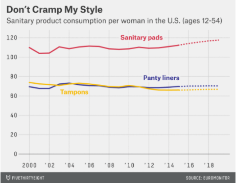 After the emergence of Toxic Shock Syndrome, consumers grew suspicious of tampons. Since 1980, the percent of women using tampons has dropped from 70% to between 40% and 45%. Occasional cases of Toxic Shock occur each year and myths about tampons have spread, although they are no longer the only devices linked to the syndrome. The reputation of the tampon has never recovered.