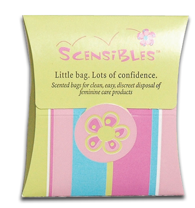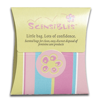 Companies like Scensible Source Co. manufacture products to solve the problems inherent in the disposal of menstrual products. These scented bags are intended to provide clean, easy, discreet disposal. Scensibles are designed to conceal the scent and appearance of their contents in trashcans.